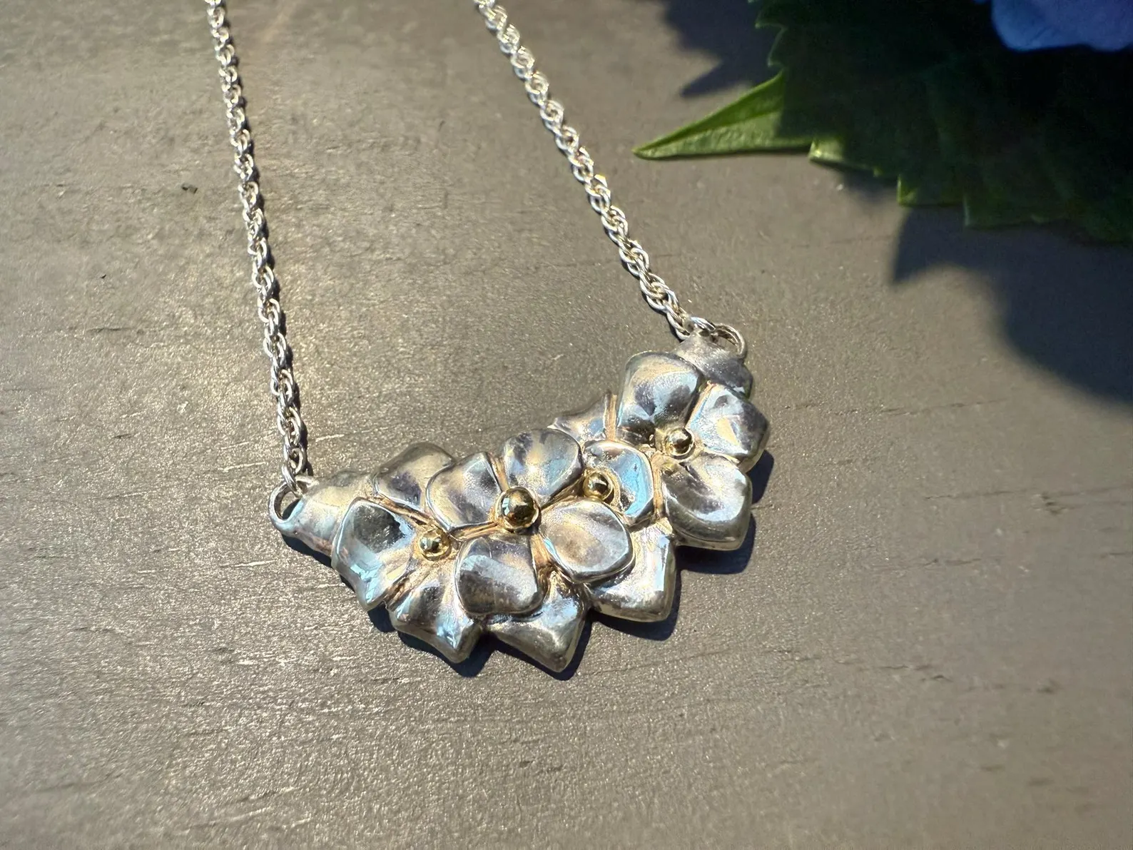 Hydrangea motif, Pendant, Silver925, K18 balls, Flower lovers, Mother’s Day, Birthday for your partner, Hand made, Original design.